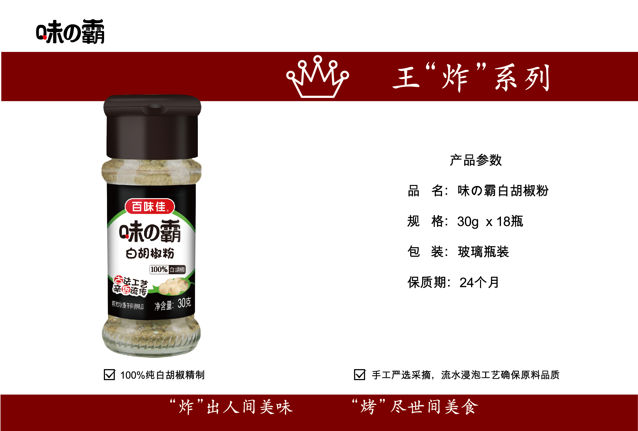 味の霸白胡椒粉 相關(guān)產(chǎn)品: 味の霸白胡椒粉 味の霸胡椒粉2016/07/08 味の霸香脆炸粉2016/07/08 味の霸香辣炸粉2016/07/08 味の霸蒜香炸粉2016/07/08 味の霸面包糠(黃糠)2016/07/08