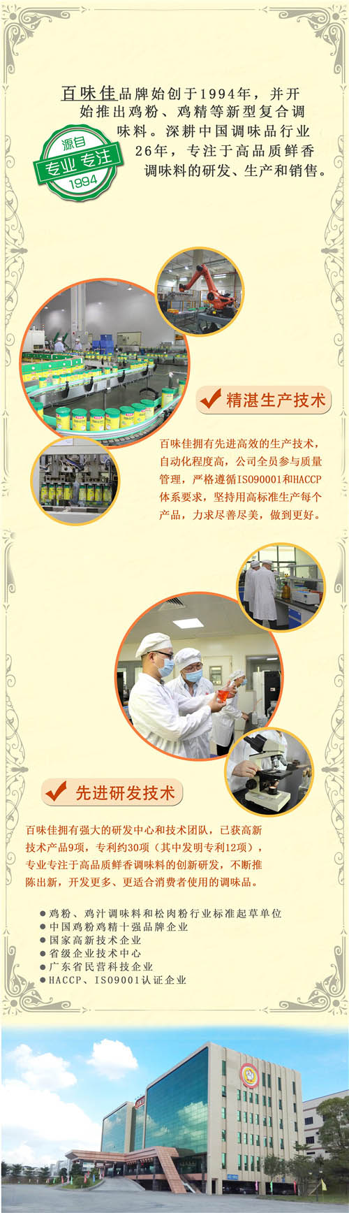 縱橫調(diào)味品市場20+年,什么樣的炸粉這么把炮? 發(fā)布時間:2020-9-18 17:17:05 相關(guān)閱讀: 縱橫調(diào)味品市場20+年,什么樣的炸粉這么把炮? 七夕味覺“食”刻,用百味佳醬料點燃浪漫餐桌!2025/09/03 秋日貼膘季|用酸甜橙香與醇厚醬香,解鎖初秋味覺新體驗!2025/09/03 新品上市 百味佳焙煎芝麻口味沙拉汁,為輕食簡餐添好味!2025/09/03 情暖八一 百味佳攜手共赴一場老兵之約,以公益之心傳承紅色軍魂2025/09/03 重磅官宣,佳哥表情包全新上線啦,快來一起聊天吧!2025/09/03