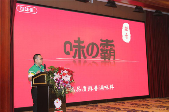藉此年度盛會(huì)之際,百味佳不忘老朋友之情,優(yōu)先于會(huì)上公布了旗下子品牌——味之霸全新系列產(chǎn)品矩陣,市場(chǎng)營(yíng)銷部經(jīng)理?xiàng)钸M(jìn)華從味之霸的品牌創(chuàng)建背景、品牌定位、設(shè)計(jì)語言及市場(chǎng)機(jī)會(huì)和價(jià)值,詳細(xì)地進(jìn)行全面的闡述分享。